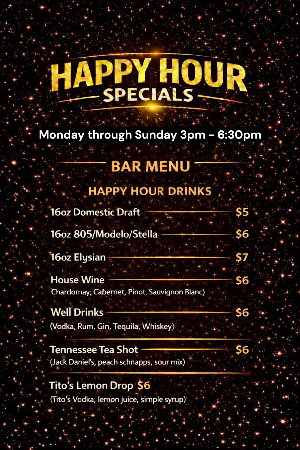 THE UBG HAPPY HOUR! 3:00 - 6:30 PM MON-SUN